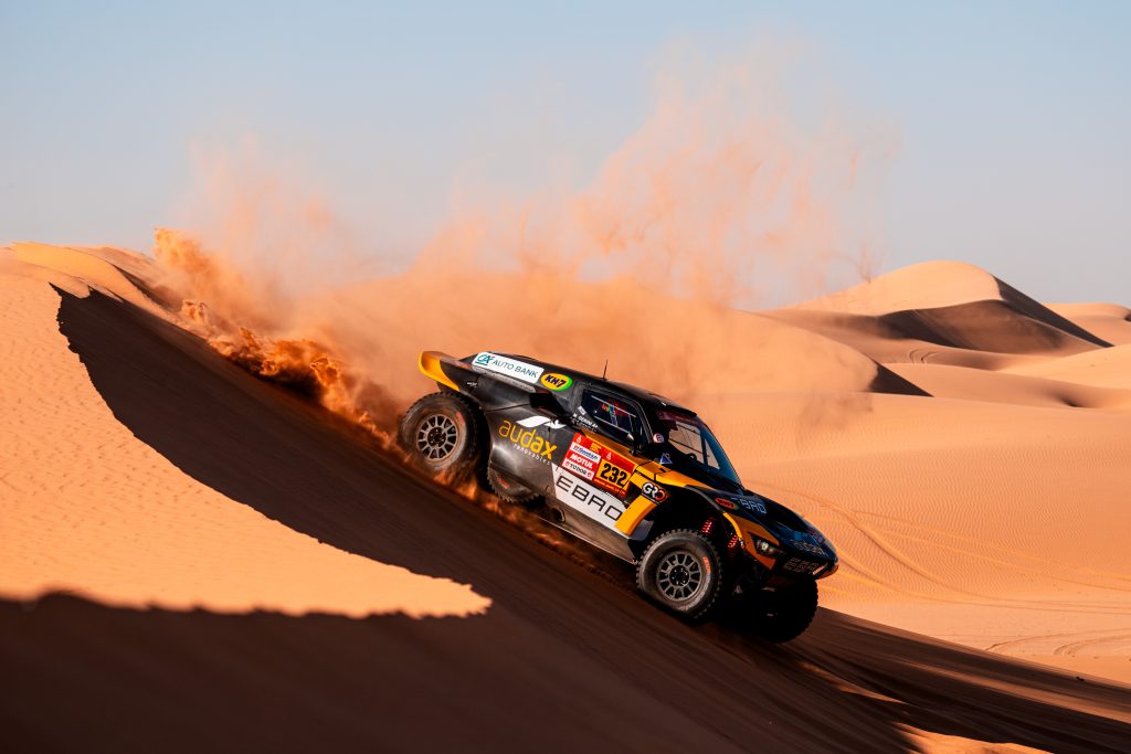 Tras una hora y 15 minutos de intenso trabajo sobre la arena, la pareja hispano-italiana ha logrado retomar la marcha y completar el recorrido en la 125ª posición (+1:46:01). Pese a la lógica pérdida de tiempo, la excelente regularidad mantenida durante todo el rally ha permitido que el equipo EBRO Audax Motorsport se mantenga en la 20ª posición de la clasificación general (+2:48:46).