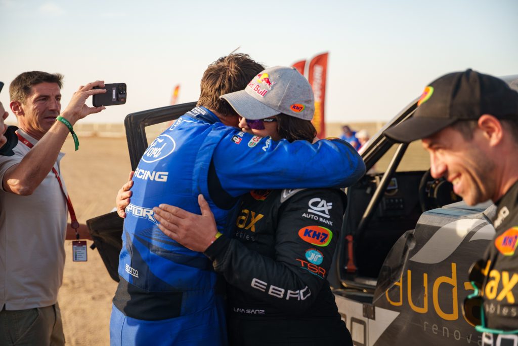 En ese preciso instante, Laia Sanz y Maurizio Gerini han alcanzado su posición y no han dudado en ayudarles. Los integrantes del EBRO Audax Motorsport han unido los dos vehículos con una eslinga y han remolcado el Ford hasta el campamento. Una vez más, el gesto solidario de Sanz y Gerini volvió a salvar la carrera de un rival, una muestra genuina del llamado espíritu dakariano.